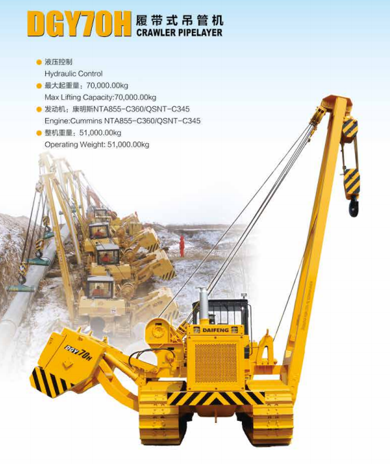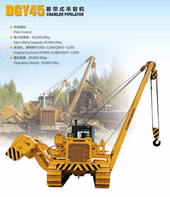 4、具有強制動功能 ,當吊管機在坡道重載時,由于自重很大,易引起制動失效產生溜車現 象。為防止此類事故發生,增加強制動功能,具體結構是在吊管機底 盤后橋箱后部加裝液壓駐車制動油缸,由液壓蓄能器、電磁換向閥組 成的保壓回路為制動油缸持續提供動力。
